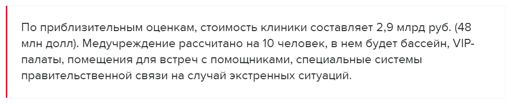 Трехэтажная клиника будет построена в предместье Москвы и будет расположена на территории нынешней Центральной клинической больницы, где обслуживаются все кремлевские чиновники.